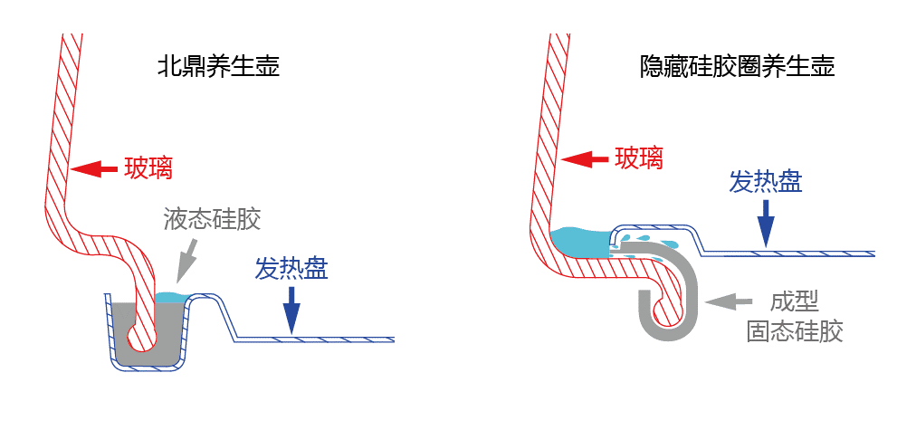 让我们科学地来看待,北鼎养生壶和隐藏硅胶圈养生壶的结构区别