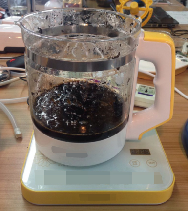 但事实确实如此么?我们抽取了三台采用类似隐藏胶圈的养生壶进行烹煮,用全新的样机,烹煮黑茶1个小时。