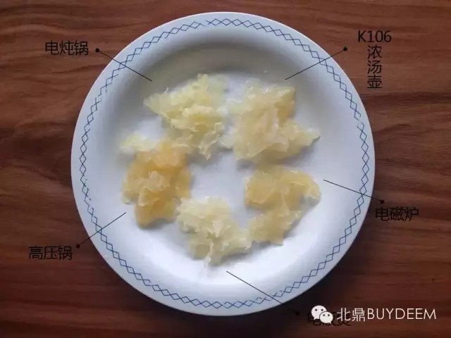 ▲高压锅银耳非常软,没有了糯糯的口感,电炖锅和电饭煲的银耳还是硬的...电磁炉和浓汤壶的银耳软糯适中