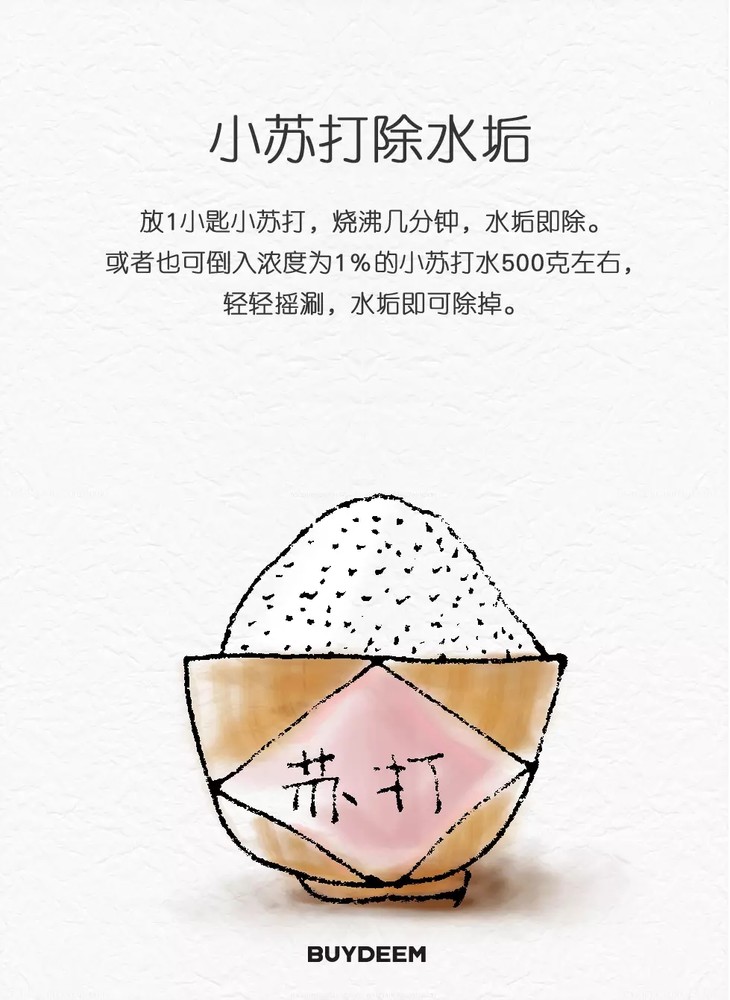 放大约1汤匙的小苏打,加满水,煮沸后静置一小时左右,然后刷洗就可以顺利除去。