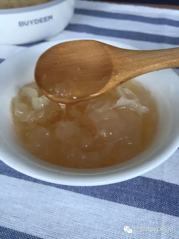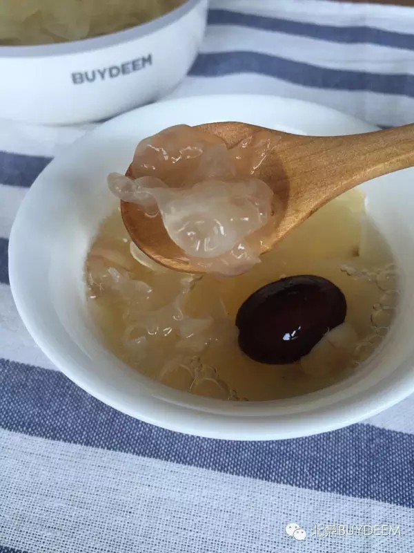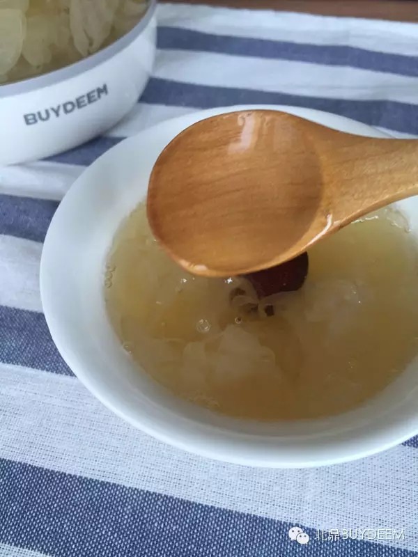 幸福的时光过得特别快,随着浓汤壶几声清脆的提示音,美容养颜的银耳红枣汤做好了!小北迫不及待把它们都盛出来了,看图片,依次是一二三号银耳哦
