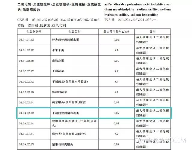 对于四种银耳的测试结果出来了,那相关标准又是怎么样的呢?小北特地查询了GB 2760-2011食品添加剂使用标准,关于二氧化硫的标准如下表: