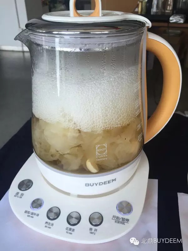 很快,“银耳温泉”结束了,温泡键的灯灭,开始银耳滋补汤模式,打开中间的防溢壶盖放入红枣和枸杞哦。呼啊呼啊~银耳慢慢变得柔软而美腻~